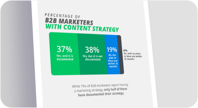 INSIGHTS FROM THE 2018 B2B CONTENT MARKETING TRENDS REPORT PERCENTAGE OF B2B MARKETERS WITH CONTENT STRATEGY 37% 38% 19% 6% No, but No, with no plans Yes, and it is Yes, but it is not plan to to have one within documented documented have one 12 months within 12 months While 75% of B2B marketers report having a marketing strategy, only half of them have documented their strategy. MZLTD.COM